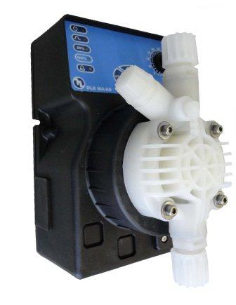 Pompe doseuse analogique murale avec réglage manuel du débit.